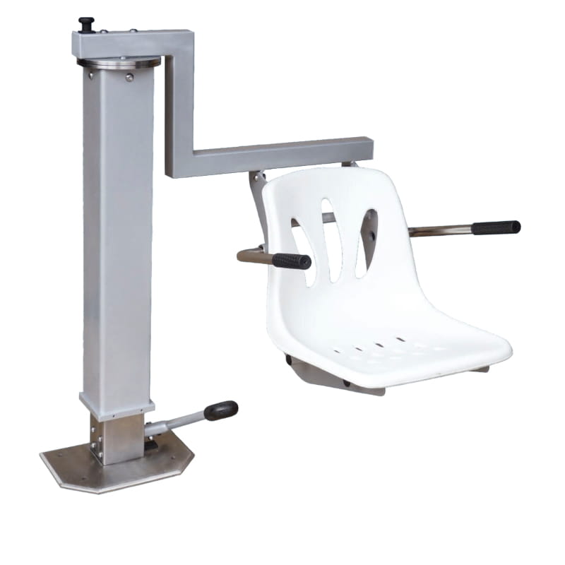 Durch lösen der Blockade am Kopfteil kann der Arm mit dem Sitz des Badewannenlift geschwenkt werden.