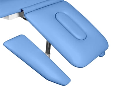• Öffnung mit Stopfen in Kopfstütze und Liegefläche