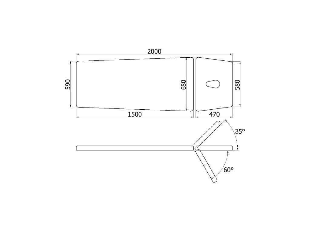 RSX2E ist ein zweiteiliges Modell eines stationären Therapieliege.