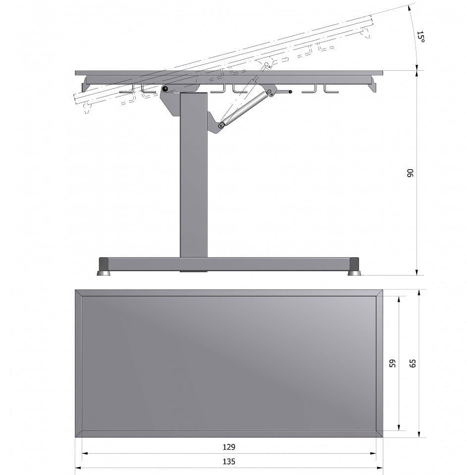 Der Tischplattenwinkel ist hydraulisch per Gasfeder stufenlos verstellbar 0°-15°