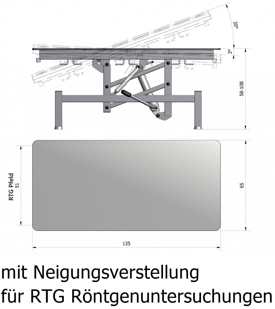 - Der Tischplattenwinkel ist hydraulisch per Gasfeder stufenlos verstellbar